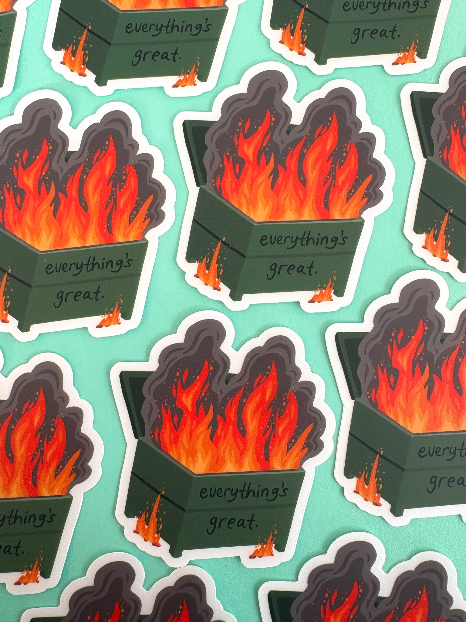 It’s great…just in a big great dumpster fire way. 🤣 Sticker is approximately 3”x3” and waterproof.